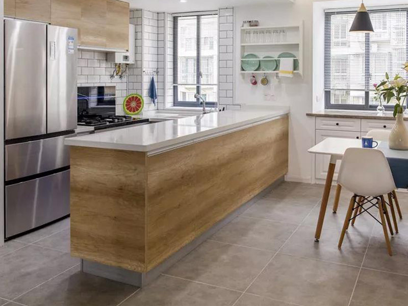 2、廚房比較容易臟,但是因?yàn)榫o連客廳,打掃起來(lái)特別困難,不能直接用水沖洗,現(xiàn)在很多家庭客廳會(huì)選用地板鋪設(shè),而廚房會(huì)選擇瓷磚,但是開(kāi)放式廚房一般做不到兩者的直接拼接,因此打掃水漬等問(wèn)題十分麻煩。